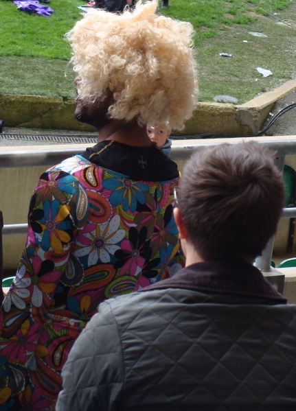 I have come to realise that English fans of rugby sevens love to dress up. Most keep to the theme but many seem to keep a fancy-dress outfit at home to suit all occasions. Take the two guys dressed as nuns. They must have thought, “What can we wear for a 70s disco fever theme? I know; our habits. Ace.”