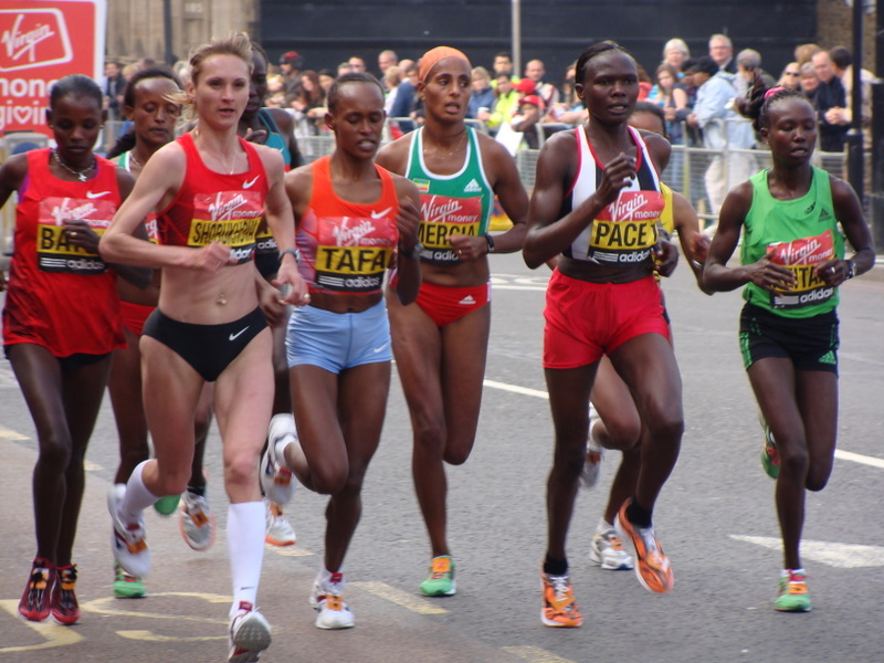 The elite women. The green-vested speedster on the right ran in what was her second marathon and won in just over two hours.